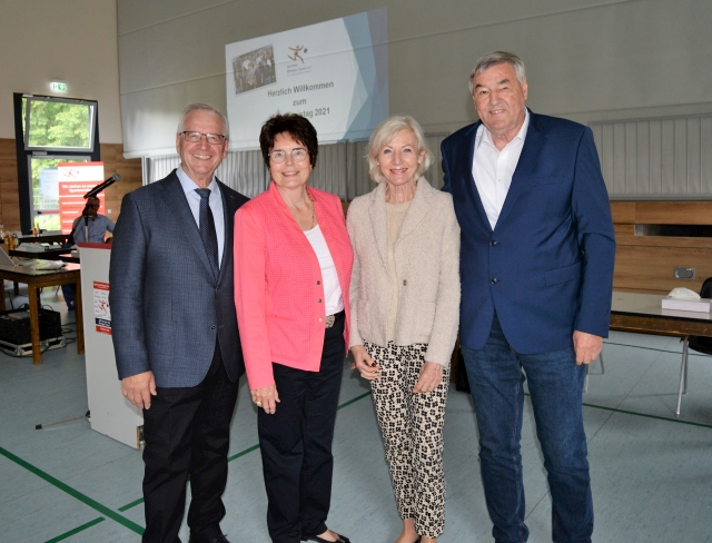 Im Anschluss wurden die bisherigen Vorstandsmitglieder Ursela Schlott, Jürgen Kröckel, Christina Fuchs und Christa Porten, die sich allesamt über Jahrzehnte im Sportkreis engagiert hatten, von Schmidt mit einer Laudation, Ehrenurkunden, Präsenten und Blumen verabschiedet. Dem stlv. Sportkreisvorsitzenden Helmut Heisen war es vorbehalten, seinen bisherigen „Chef“ und Freund Manfred Schmidt mit launischen Worten zu verabschieden. Er bescheinigte ihm, dass er für den Sport lebe. Er sei seit 1962 ehrenamtlich aktiv, davon elf Jahre als Vorsitzender des Sportkreises. Heisen verkündete, dass Schmidt vom Vorstand zum Ehrenvorsitzenden ernannt wurde. Schmidt betonte nicht ohne Stolz, dass er „selbstbestimmt“ gehe und dabei einen leistungsstarken und innovativen Sportkreis hinterlasse. „Es hat Spaß gemacht, viel zu bewegen. Das Ehrenamt hat mein Leben bereichert – und man bekommt viel zurück“, schloss er seine Ausführungen.