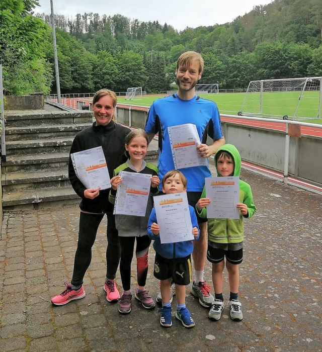 Die komplette Familie Reuschling ist Stolz auf Ihre Sportabzeichen Urkunden 2021. Foto: Petra Molle