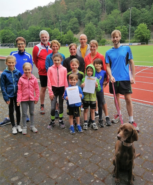 Es wird auch generationenübergreifend, oft mit der ganzen Familie, gemeinsam Sport gemacht. Die Familie Reuschling, die seit Jahren am Training komplett teilnimmt, war wieder mit dabei. Der Jüngste ist erst 5 Jahre und bekommt vom Sportkreis eine Sonderurkunde, da er für das Sportabzeichen noch zu jung ist. Gemeinsam feuert man sich beim Finish eines 800- oder 3000m-Laufs an, unterstützt und ermuntert sich gegenseitig, damit alle erfolgreich ins Ziel kommen. Sogar Familienhündin Joyce ist mit dabei und liegt, zumindest bei den Laufdisziplinen, immer eine Hundeschnauze vor allen anderen. Dabei hat jeder viel Spaß, hält sich fit und dadurch auch gesund.