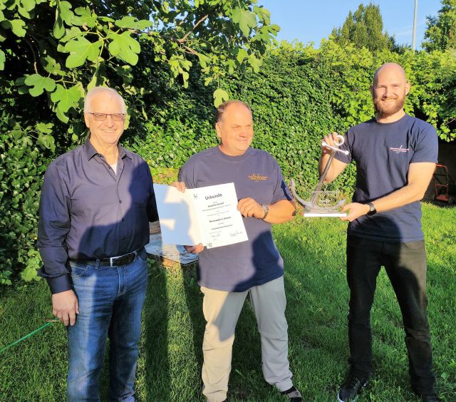 v.l. Sportkreis Ehrenvorsitzender Manfred Schmidt, Joachim Gunkel (WSG), Dorian Massmig (1. Vors. WSG). Foto: Annika Gunkel