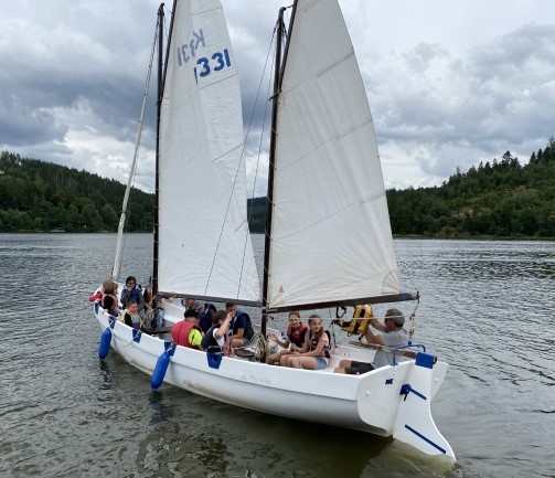 Sportkreisvorsitzender Markus Jestaedt nahm die Gelegenheit wahr und besuchte seinen Jugendvorstand und die Jugendlichen in Thüringen, um sich auch mit Vertretern des heimischen Sportkreises und der Lokalpolitik über aktuelle Themen auszutauschen. Vor den Gesprächen stand aber erst noch der Höhepunkt des dritten Freizeittages auf dem Programm, eine Segel-Kutterfahrt, zusammen mit den jungen Teilnehmern, auf dem idyllischen Bleilochstausee, auch Thüringisches Meer genannt.
