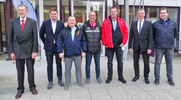 v.l. Karl-Wilhelm Höhn, Sportkreisvorsitzender Markus Jestaedt , David Strandt, Torsten Schweigert (1. Vors. Ahrweiler BC), Felix Ehrhardt, Landrat Frank Kilian und Michael Krause (ABC). Foto: Michael Hoyer