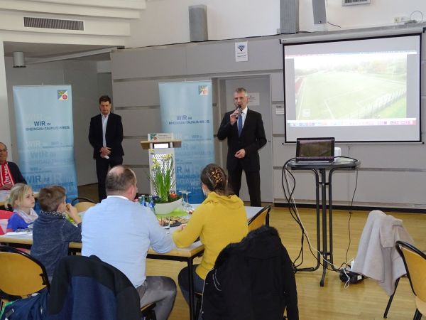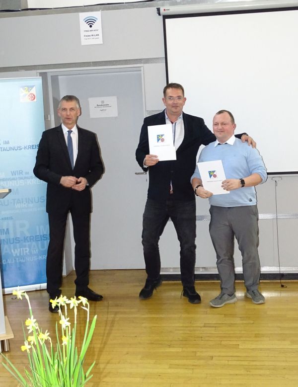 Sportkreisvorsitzender Markus Jestaedt und Landrat Frank Kilian nahmen als Vertreter des Sportkreises und des Rheingau-Taunus-Kreis eine Ehrung der besonderen Art vor. Felix Ehrhardt und David Strandt wurden von Landrat Kilian für Ihr überragendes ehrenamtliches Engagement für die Opfer der Flutkatastrophe in Ahrweiler, als erste Flutengel des Kreises ausgezeichnet.