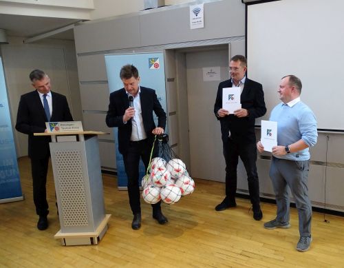 „Die Solidarität, die Menschen an den Tag legen, brauchen wir auch in den nächsten Krisen“, betont der Sportkreisvorsitzende Markus Jestaedt. Das Netz voller Fußbälle, das er den Geehrten überreicht, geben diese nach Ahrweiler weiter und auch die zwei Schecks über jeweils 250 Euro sollen in weitere Hilfsprojekte investiert werden.