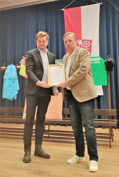 v.l. Sportkreisvorsitzender Markus Jestaedt, Bernd Helck (1. Vors. FC Kiedrich