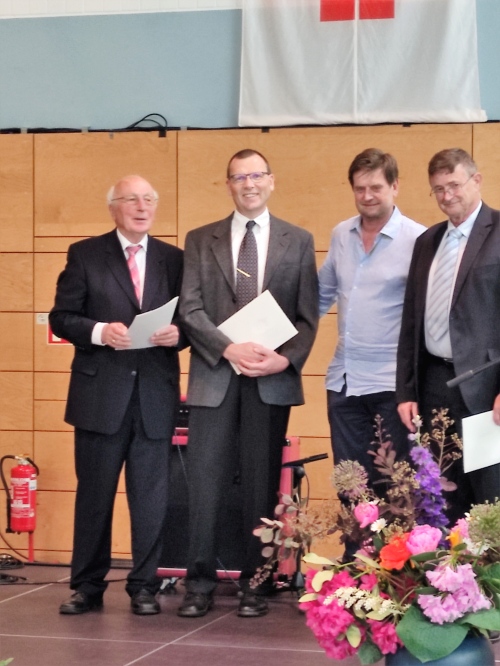 Die Bronzene Ehrennadel für v.l. Erik Siems, Reiner Hütter und Volkmar Schrecke rechts, 2.v.r. Markus Jestaedt (Sportkreisvorsitzender). Foto: Manfred Schmidt