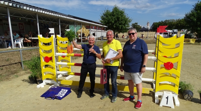 Im Namen des Landessportbund Hessen übergaben Heisen und Hoyer die Ehrenurkunde des Landessportbundes an den ersten Vorsitzenden. Vom Sportkreis gab es ein kleines Weinpräsent welches man sich nach erfolgreichem Turnierabschluß gut schmecken lassen soll. Natürlich wurden die Hauptakteure eines Reitturniers, die Pferde, nicht vergessen. Für die gab es einen großen Bund leckerer Möhren welche die Sportkreisvertreter unter dem Gelächter der Zuschauer an Hertling überreichten.