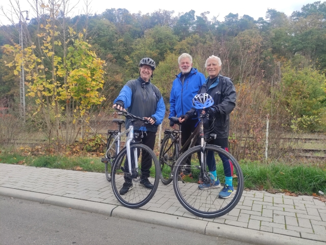 Der Ehrenvorsitzende Manfred Schmidt und der 2. Vorsitzende Helmut Heisen bevorzugen seit Jahren die 20 km mit dem Rad. Der Sportabzeichenobmann Willibald Ruhfaß war dabei als Prüfer, als sich die beiden auf der Rad- und Wanderstrecke Kettenbach – Oberneißen und zurück der Herausforderung stellten. Auf dem Bild sieht man sie über ihren Erfolg glücklich lächeln.