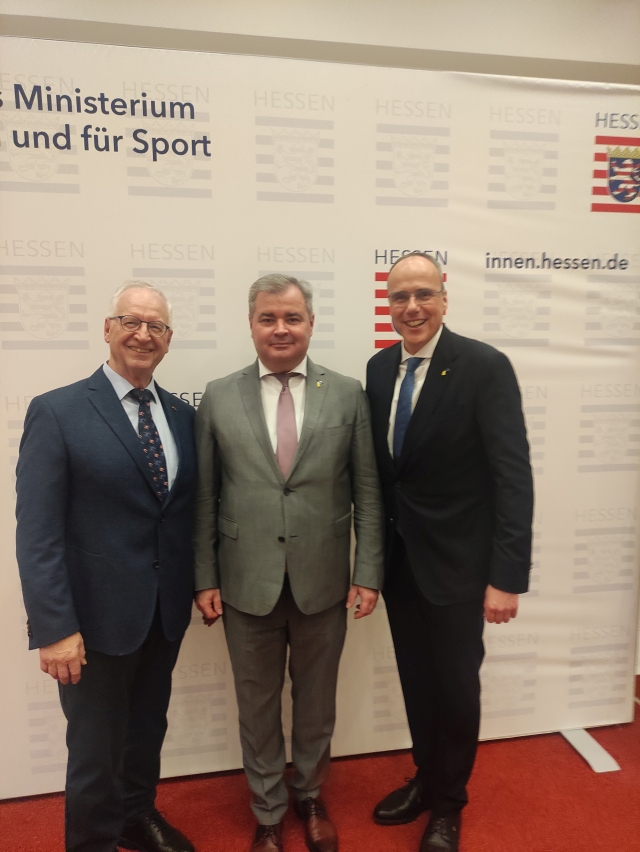 v.l. Ehrenvorsitzender Manfred Schmidt, ukrainischen Generalkonsul Vadym Kostiuk, Peter Beuth Minister des Inneren und Sport. Foto: Manfred Schmidt