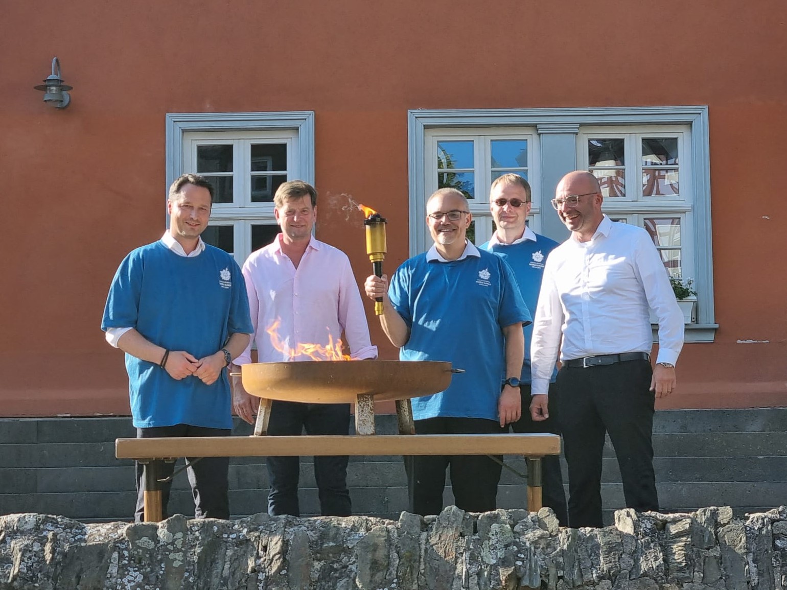 v.l. Die Bürgermeister des Idsteiner Landes und der Vorsitzende des Sportkreises Rheingau-Taunus beim Entzünden des „Olympischen Feuers“;, Joachim Reimann (Niedernhausen), Markus Jestaedt (Sportkreis), Jan Kraus (Hünstetten), Markus Hies (Waldems-Esch), Christian Herfurth (Idstein). Foto: Markus Jestaedt