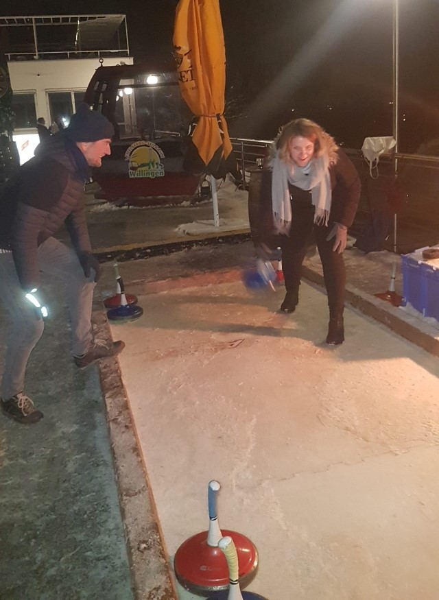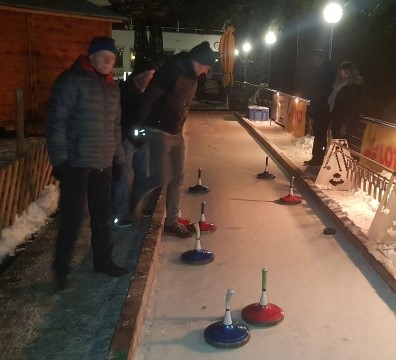 Natürlich kam auch die sportlichen Aktivitäten nicht zu kurz. Rasch wurden zwei Gruppen eingeteilt. Auf der Eisstockbahn der Lokalität kämpften "Rot" gegen "Blau" ehrgeizig um den Sieg, in einem kleinen Turnier. Sieger waren alle Teammitglieder gemeinsam, der Spaß stand an oberster Stelle.