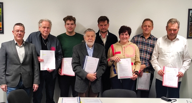 v.l. Michael Helbing (Aikido Niedernhausen), Günter Steger (Vorstand TG Winkel), Julian Trieb (1.Vors. TV Kettenbach), Manfred Jennewein (1.Vors. Aikido Niedernhausen), Markus Jestaedt (Sportkreisvorsitzender), Nicole Schubbach (2.Vors. TV Bermbach), Arno Diefenbach (Schriftführer 1FC Hettenhain), Armin Lappas (1.Vors. FSV Winkel) Foto: Manfred Schmidt