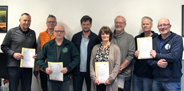 v.l. Werner Freimuth (TG Mittelheim), Alexander Wolf (TV Michelbach), Jörg Diedler (Schützenverein Lorch), Markus Jestaedt, Brigitta Söhn (TG Johannisberg), Peter Noack (SV Neuhof, Michael Ruff und Christoph Kremer (Rheingau Schwimmclub Eltville). Foto: Sportkreis, Markus Jestaedt