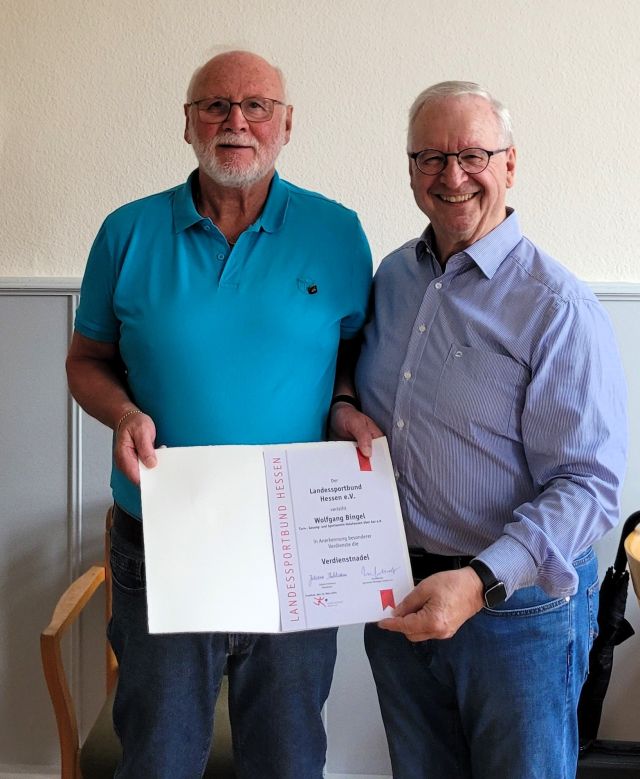 Verdienstnadel des Landessportbundes für Wolfgang Bingel