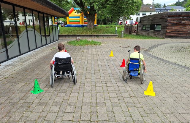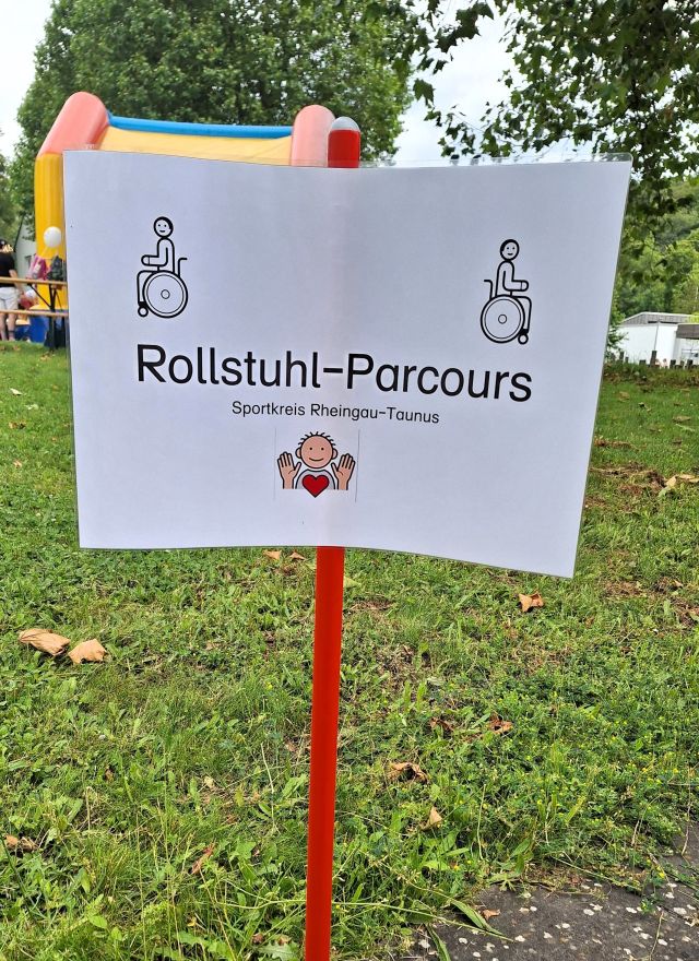 Der Sportkreis Rheingau-Taunus bereicherte das vielfältige Angebot mit einem Rollstuhl-Parcours. Interessierte Kinder und Erwachsene hatten hier die Möglichkeit sich im Rollstuhlfahren auszuprobieren. Im Vordergrund stand dabei die Selbsterfahrung des Rollstuhlfahrens, als auch der Wettkampfcharakter im Slalom-Parcours. Text: Louisa Moog
