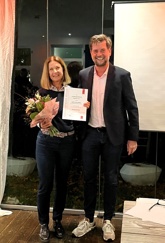 v.l. Jutta Lang-Wolz (WSG Geisenheim), Markus Jestaedt (Vorsitzender Sportkreis Rheingau-Taunus) Foto: Markus Jestaedt