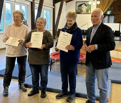 v.l. Monika Emanuel, Karin Römer, Maria Ries (alle Gymnastikverein Huppert), Helmut Heisen (2. Vorsitzender Sportkreis Rheingau-Taunus). Foto: Privat, Sportkreis
