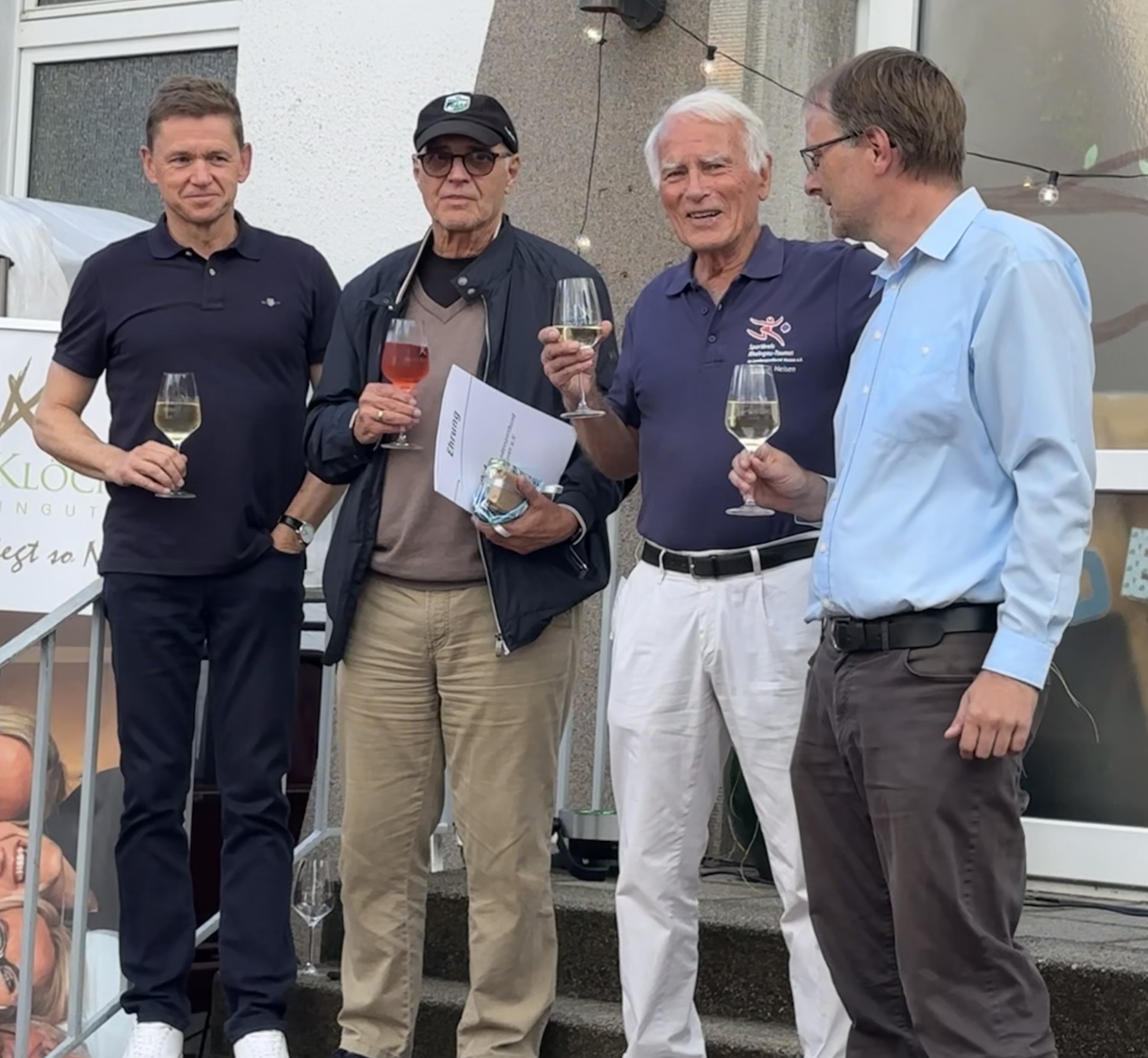 Großer Bahnhof für Klaus-Dieter Humm: Bürgermeister Hies, Landtagsabgeordneter André Stolz und 2. Vorsitzender des Sportkreises Rheingau-Taunus Helmut Heisen waren nach Niederems gereist, um einen außerordentlichen Menschen zu ehren.