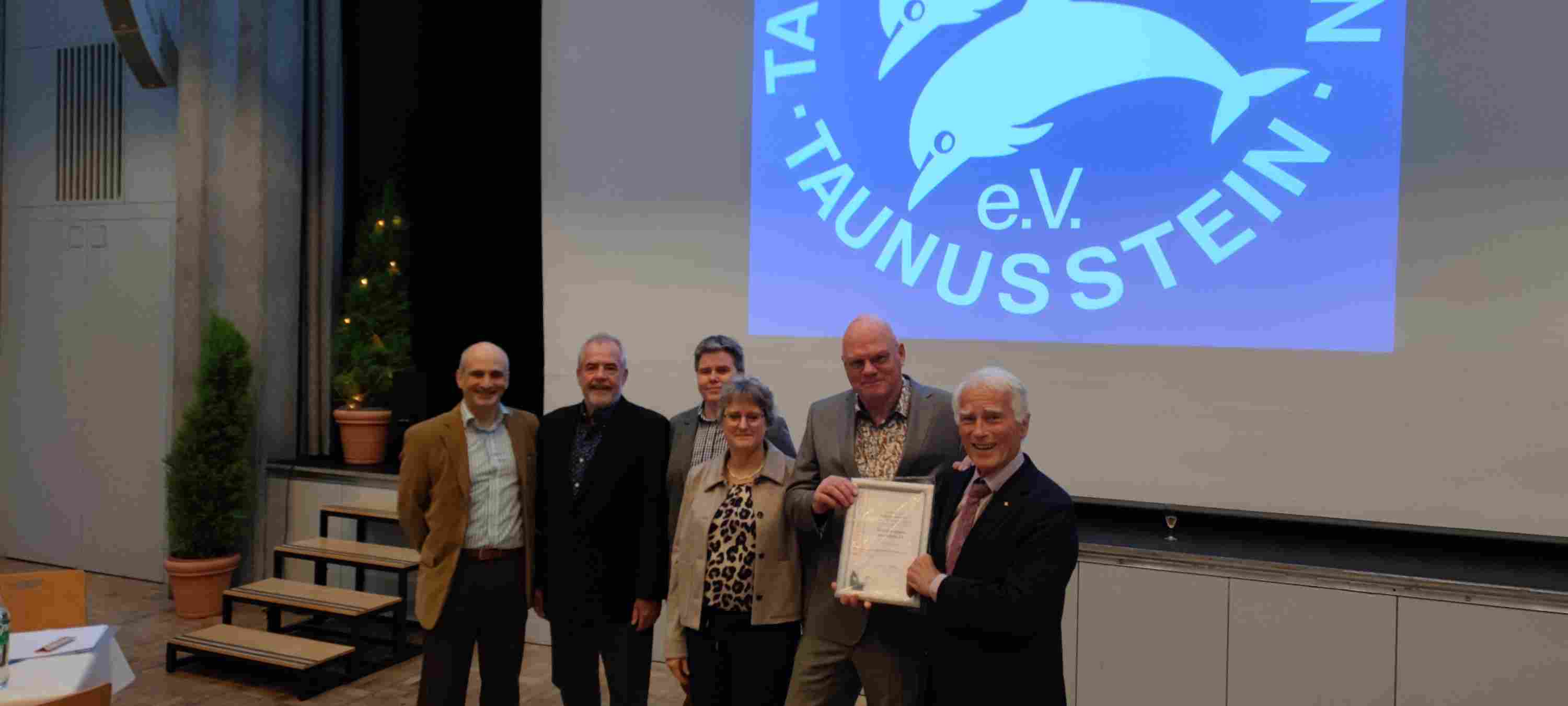 Helmut Heisen, der 2. Vorsitzende des Sportkreises Rheingau-Taunus überbrachte die Glückwünsche des Präsidiums des Landessportbundes und übergab dem Vorsitzenden Dietmar Sturm die Ehrenurkunde.